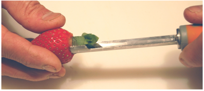 L'extracteur universal corer DE BUYER permet également d'équeter les fraises (petit modèle)