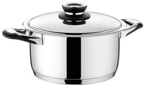 Inox 18/10 poli miroir qualité Orfèvre. Fond thermodiffuseur épaisseur 11,3 mm. Anses ergonomiques. Couvercle avec thermomètre intégré. Couvercles se positionnant verticalement sur les anses, peuvent servir de dessous de plat. Bord verseur droit et net pour verser avec précision. Tous feux y compris induction. Va au lave vaisselle (sauf couvercle). Garantie à vie. Fabriqué en Italie. Livré avec mode d'emploi complet et recettes.