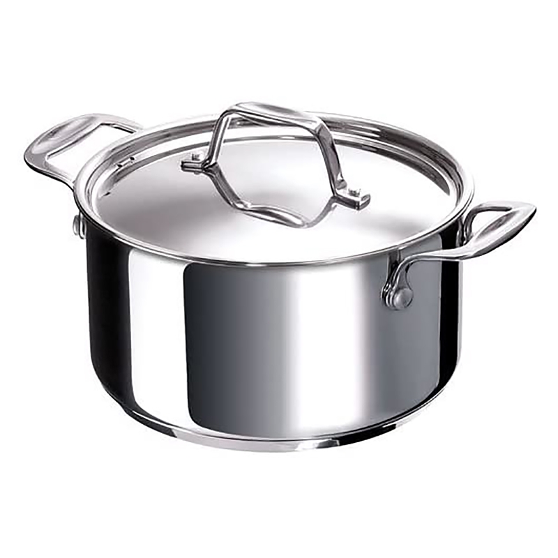 Inox 18/10 garanti 25 ans. Triple fond encapsulé. Anses inox rivetées. Va au lave vaisselle. Qualité professionnelle. Livré avec couvercle. Tous feux y compris induction.