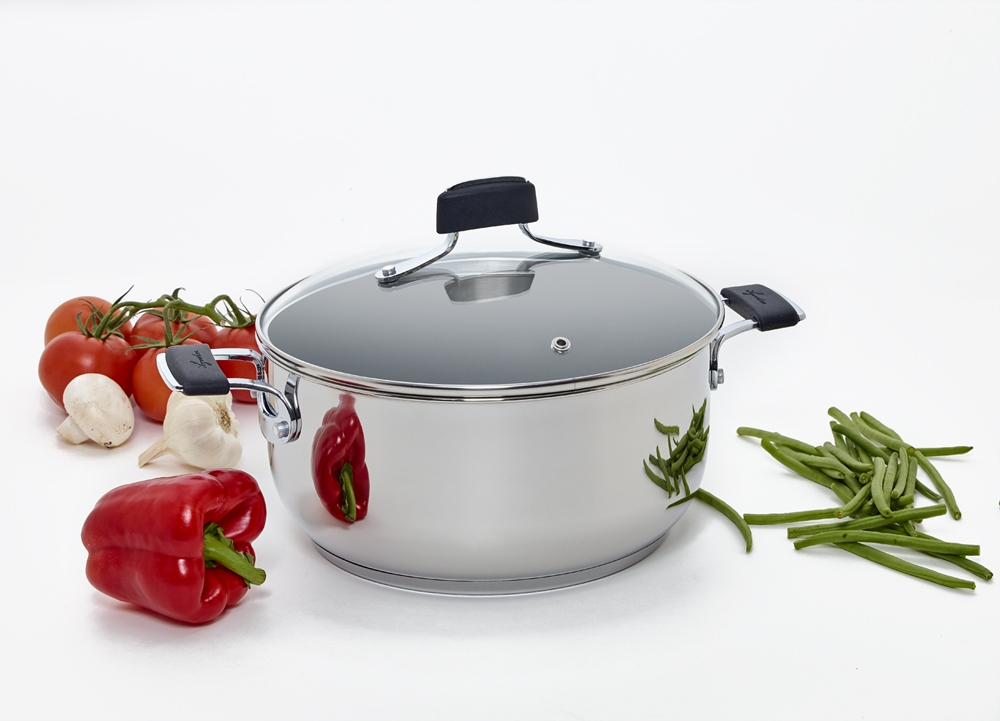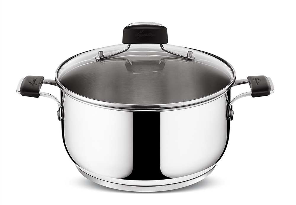 Inox 18/10. Fond Lagoseal anti-déformation épaisseur 5,5 mm. Anses rivetées avec revêtement silicone isolant effet "soft touch". Tous feux et induction. Inox garanti 25 ans. Fabriquée en Italie. Livrée avec couvercle verre.