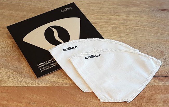 Le Filtre à Café Cookut est réalisé en coton non traité, non teint et non blanchi. De taille 4 (standard), il peut fonctionner avec la plupart des cafetières à fitre et s'utilise comme un filtre à café classique. Il est réutilisable, pour ce faire il suffit de rincer le filtre sous l'eau claire avec parfois un peu de savon et de le laisser sécher à l'air libre.