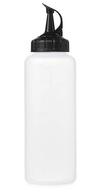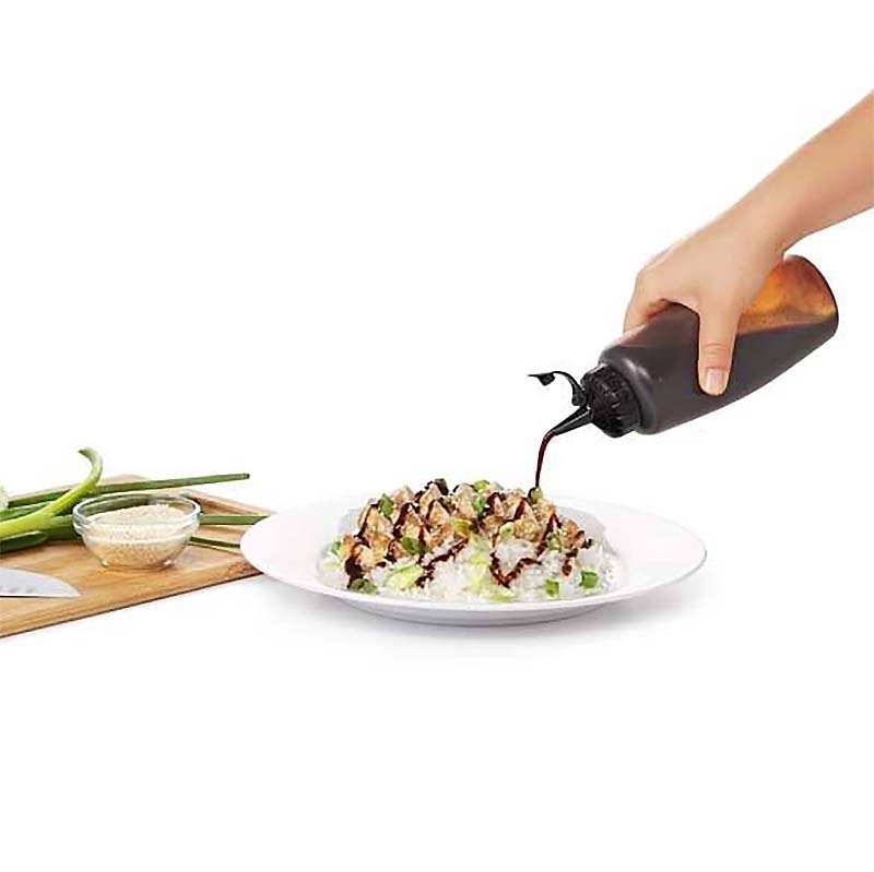 Flacon souple utilisable d'une seule main destiné à recevoir les nappages etc ... afin de vous aider lors du dressage des assiettes. Bouchon sécurisé pour l'agitation du flacon et son stockage.