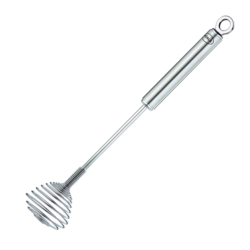 La fouet à spirale inox Rösle est prévue pour faire mousser des préparations liquides comme le lait. Son deuxième atout est d'éliminer tous les grumeaux dans les préparations mélangées comme par exemple la sauce béchamel. Sa forme est bien adaptée pour faire des mélanges dans des récipients étroits.