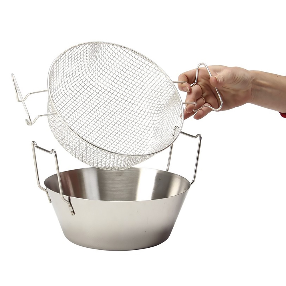 La Friteuse Inox Artame et son panier sont spécialement conçus pour la cuisson dans un bain d'huile des frites, beignets, boulettes de viande, churros, falafels.... L'inox permet une transition de la chaleur uniforme pour une friture croustillante. Compatible tous feux y compris l'induction, cette friteuse est dotée d'un panier amovible pouvant être posé sur les anses de la bassine pour égouttage des aliments frits avant service.