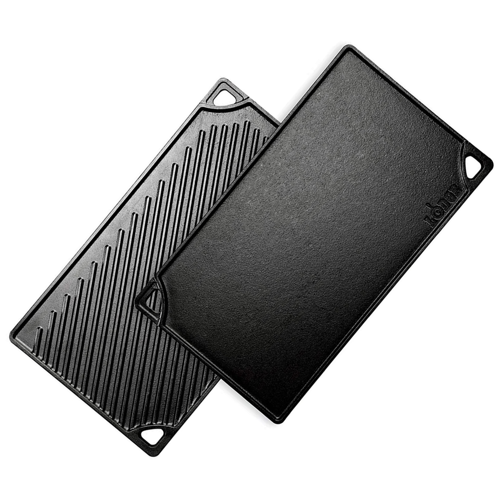 Le Grill en fonte naturelle Réversible Lodge répond à tous les besoins en terme de grillades. Réalisée en fonte naturelle sans revêtement, vous avez la garantie d'une cuisson parfaitement saine. Le grill peut-être utilisé sur n'importe quelle source de chaleur y compris l'induction. Il possède une face lisse et une face rainurée pour réaliser tout type de cuisson.