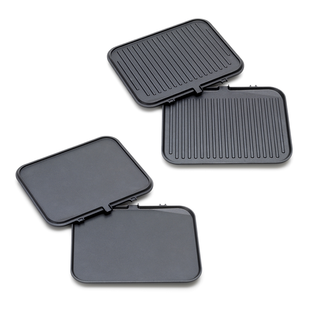 Le Griddle & Grill Cuisinart dispose de 2 jeux de plaques amovibles et compatibles lave-vaisselle. La plaque grill raynurée laissera des marques de cuisson sur les steaks ou les paninis. La plaque plancha lisse sera parfaite pour les oeufs et les pancakes. On peut utiliser simultanément une plaque de chaque, pour un petit déjeuner complet.