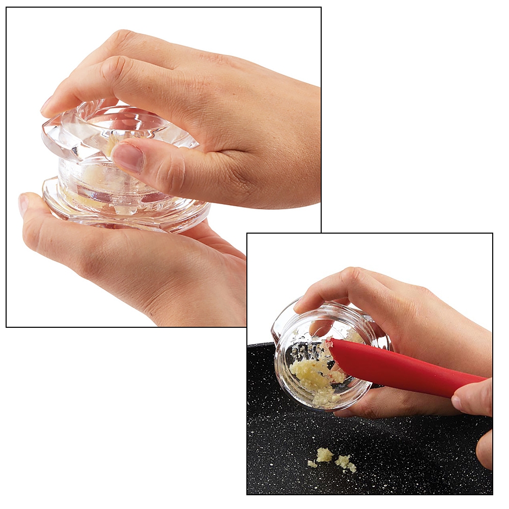 Le hachoir à ail et tubercules Zyliss émince d'un simple mouvement circulaire. Il suffit de placer les ingrédients dans le hachoir puis de tourner le haut et le bas du corps en sens opposés, astucieux non ? Ses dents de coupe transversales hachent parfaitement l'ail mais aussi le gingembre, le curcuma, l'échalote, les poivrons, les noix...