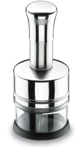 Le hachoir à piston permet de hacher finement oignons, ail, fines herbes...La lame tourne d’1/4 de tour à chaque pression entraînant avec elle les aliments pour les hacher finement. Entièrement démontable pour un lavage facile.