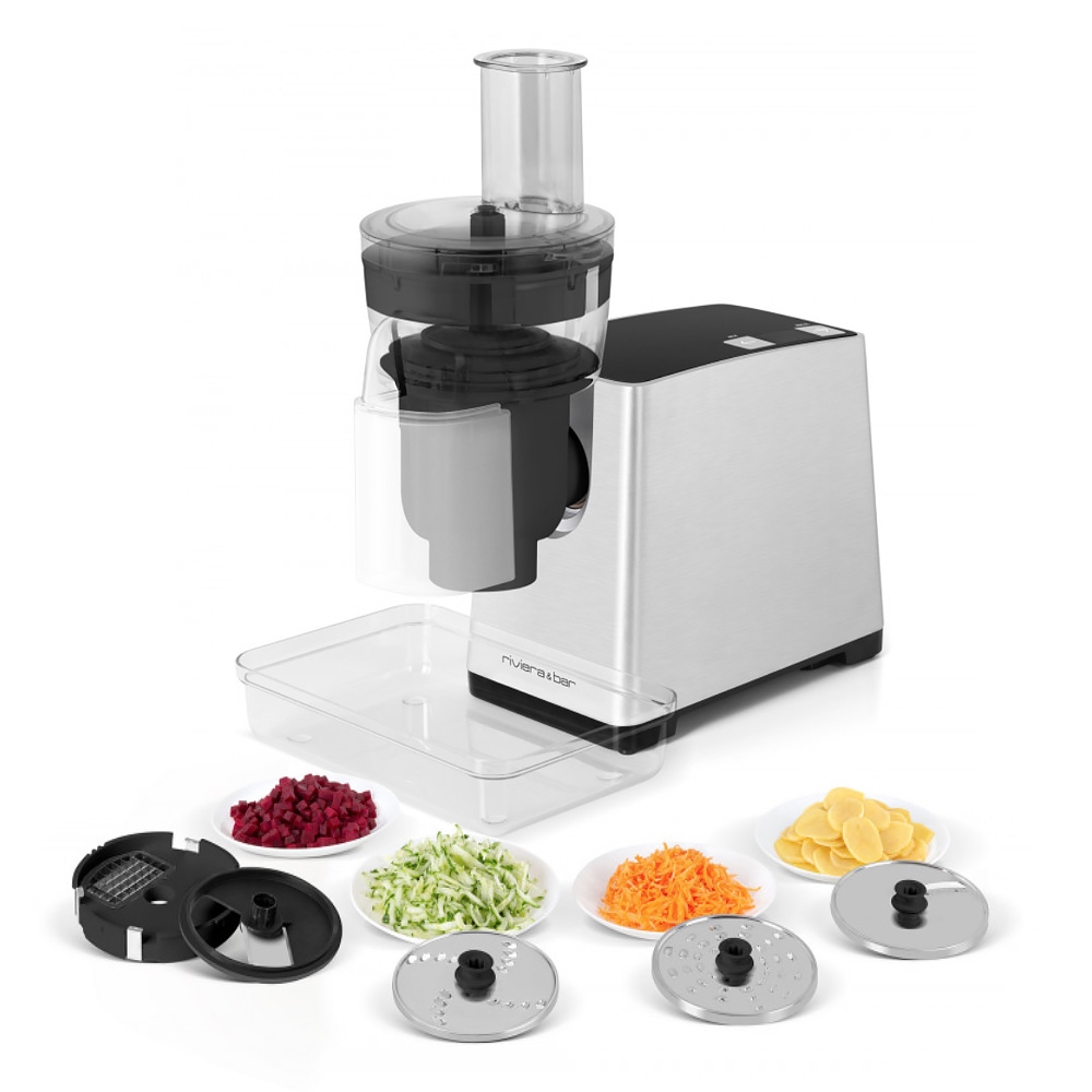 - 1 bol multi-fonctions et 4 disques inox (cubes, éminceur, râpe fine, râpe épaisse)
