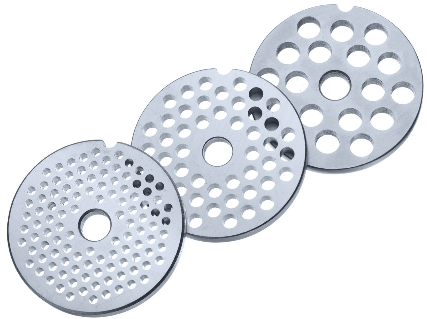 Hachoir N°8 en inox. 3 grilles incluses avec des trous de 4 mm, 5 mm, et 8 mm + accessoire pâtisserie + entonnoir à saucisses. Pied ventouse. Pour viandes, légumes et garnitures. Dimensions: 27 x 12 x 16 cm. Poids 1,2 kg. Garantie 2 ans.
