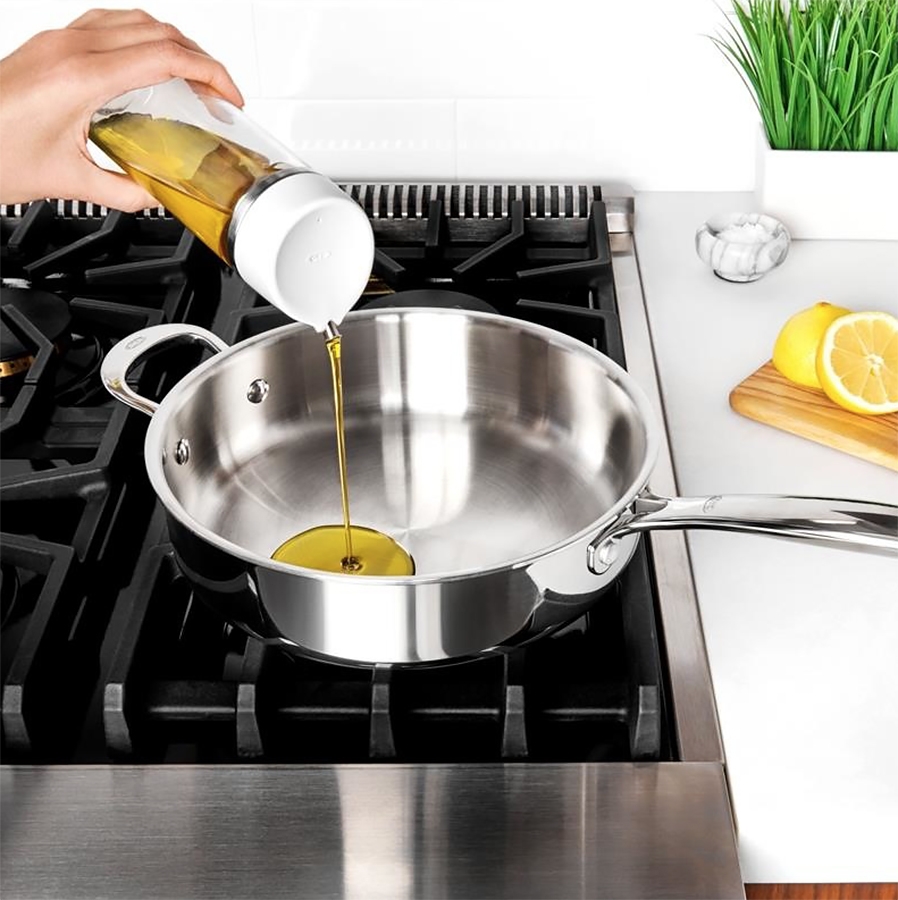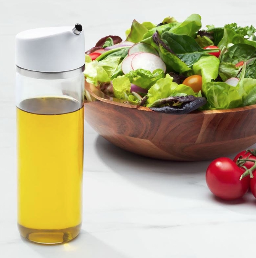 Le Huilier en Verre Oxo permet de conserver sainement toutes les huiles, vinaigres ou encore la sauce soja. Il est doté d'un bec verseur à 2 vitesses de débit pour un versement plus précis.