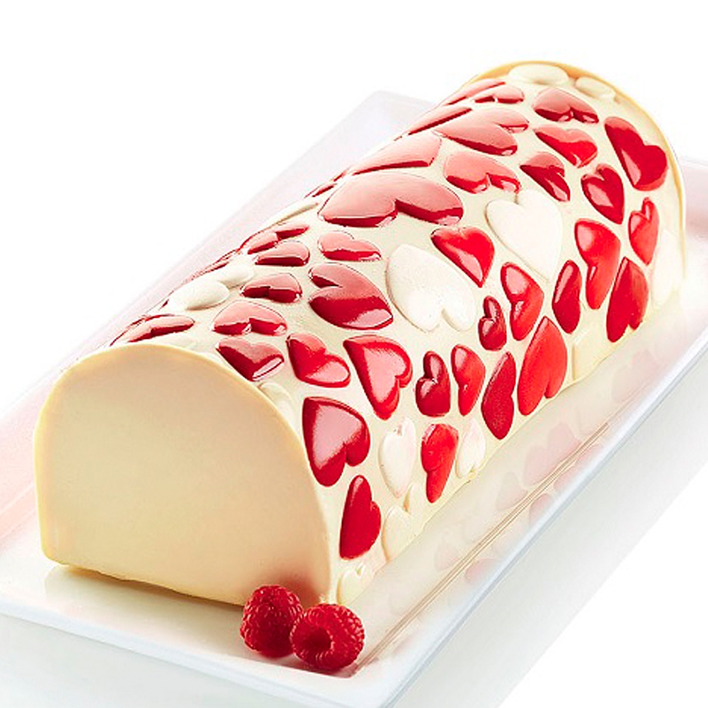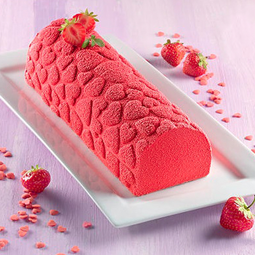 Le Kit Bûche Magic Love Silikomart permet la réalisation très facile de bûches glacées ou froides au décor coeur. Fabriqué en silicone alimentaire, il est compatible four, congélateur et lave-vaisselle.