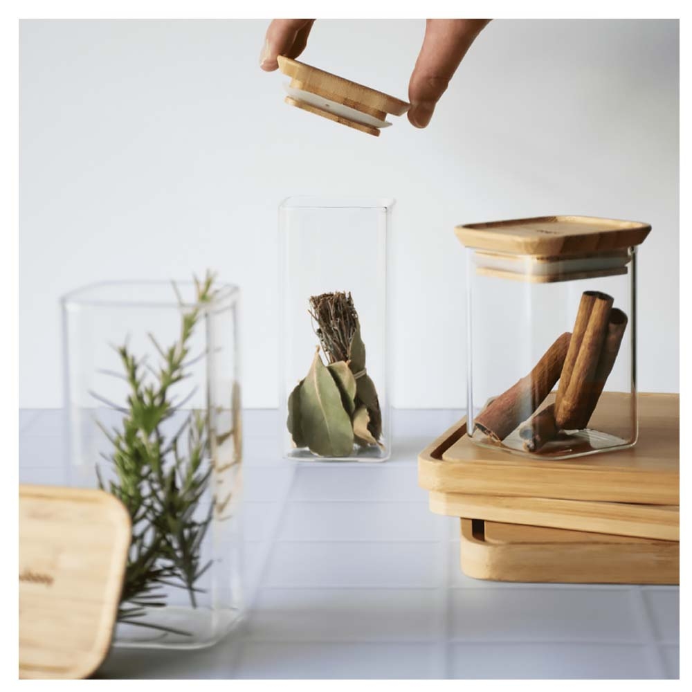 Les Boîtes à épices en Verre et Bambou Pebbly sont réalisées en verre borosilicate et possèdent un couvercle en bambou muni d'un joint silicone pour assurer une étanchéité parfaite et ainsi permettre une bonne conservation des aliments. De forme carré, elles sont empilables, prennent peu de place et offre une alternative saine aux boîtes en plastique. Elles se nettoient facilement au lave-vaisselle (sans le couvercle). Cette boîte est idéale pour la conservation de vos herbes, épices et condiments.