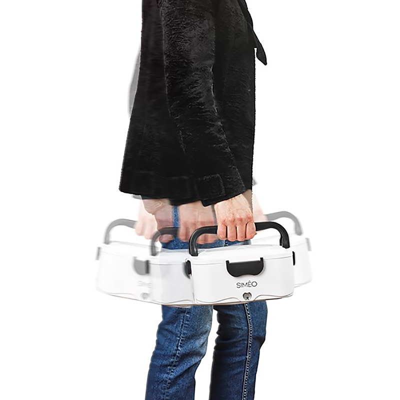 - Facilement transportable grâce aux deux poignées rabattables et son faible encombrement : 23 x 16,5 x 11 cm.