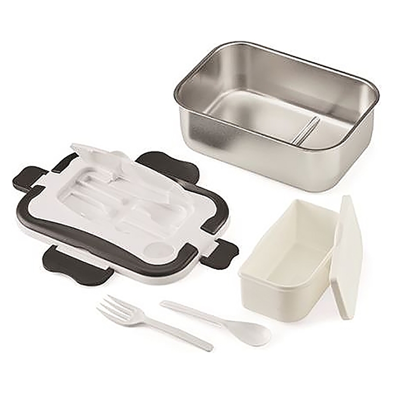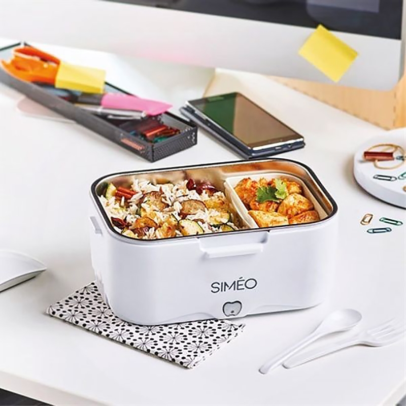 La lunch box électrique chauffante Siméo possède 2 compartiments (un en inox & un en plastique) d'une capacité totale de 1,5 litre pour bien séparer vos aliments. Cette lunch box est adaptée à une utilisation au bureau, en déplacement, sur chantiers ... A vous les repas chauds même en déplacement ! Les contenants et couverts de la lunch box Siméo se nettoient facilement au lave-vaisselle. Sa fermeture est parfaitement hermétique.