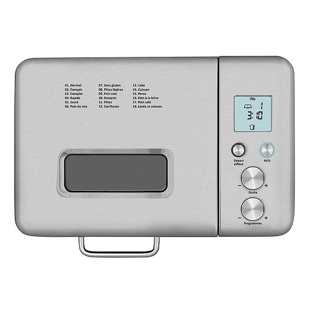 Pains, cakes, confitures... il y en a pour tous les goûts... Les 18 programmes de la machine à pain inox Riviera & Bar vous permettront de varier les gourmandises. Il est également possible d'utiliser un programme "perso" pour créer votre propre recette en personalisant les durées de chaques étapes : pétrissage, levée, repos, cuisson et maintien au chaud. Afin de s'adapter à tous les goûts, elle propose 3 tailles de pain (500, 750 ou 1000 gr) et 3 niveau de dorage (clair, moyen ou foncé). Son panneau de commandes et son large écran LCD multi-information intégralement en Français affichent chaque cycle en cours : préchauffage, pétrissage, levée, cuisson, maitien au chaud.