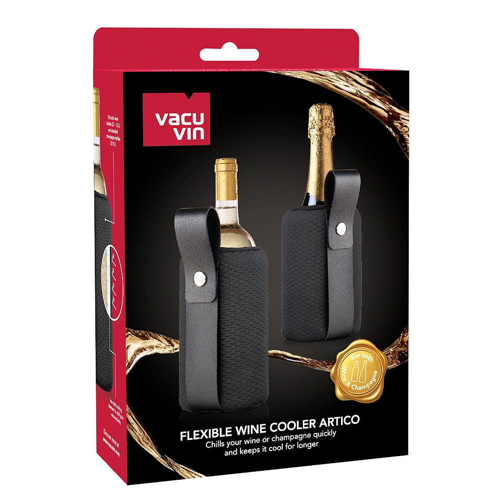 Le Manchon Rafraîchisseur de vin Flexible Artico Vacuvin s'adapte aux bouteilles de vin et de champagne pour les conserver à température idéale plus longtemps. Il suffit de placer au préalable le manchon au réfrigérateur et le tour est joué !