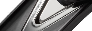 Acier inoxydable et polymères composite. lame inox en V avec angle de coupe à 19,3° optimisé. Réglage de la hauteur de coupe de 1 mm à 5 mm avec molette intégrée. Poignée ergonomique pour une prise en main naturelle. Pieds anti-dérapants. Va au lave vaisselle. Encombrement optimisé : 36,8 x 8 x 12,1 cm. Livrée avec poussoir de sécurité.