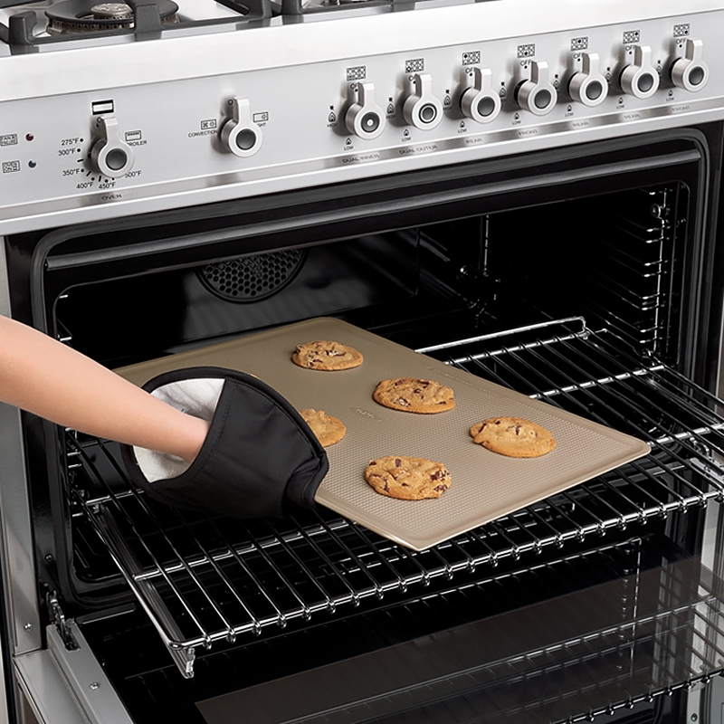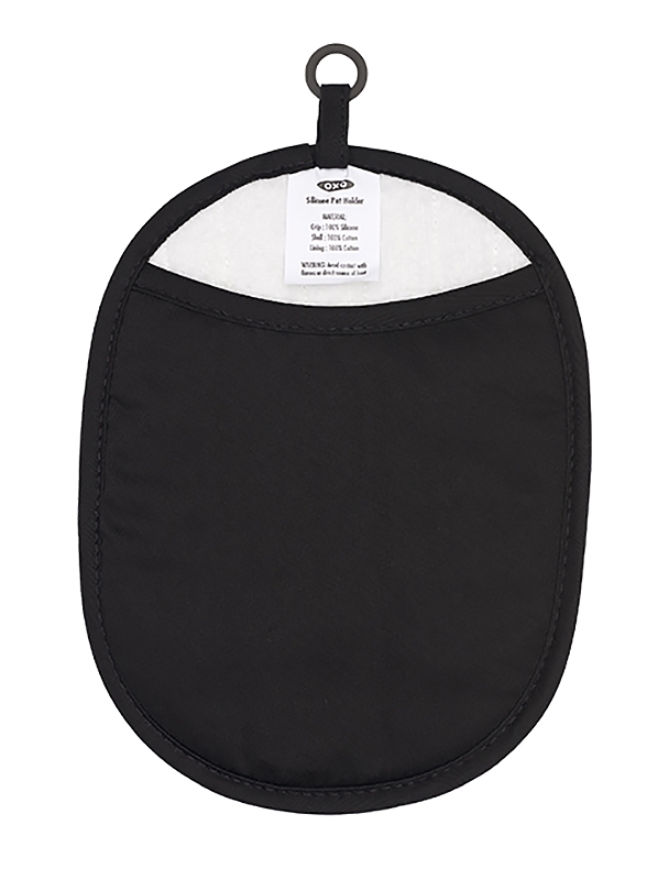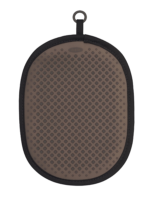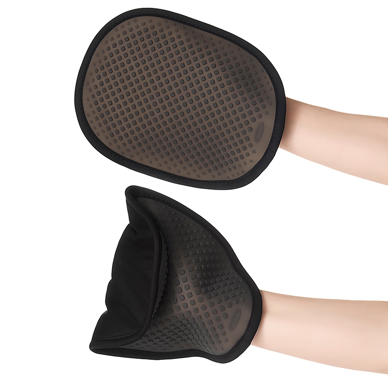 Manique-gant en silicone et coton pouvant servir de dessous de plat. La finition en losange du silicone permet une meilleure dissipation de la chaleur pour plus de sécurité.