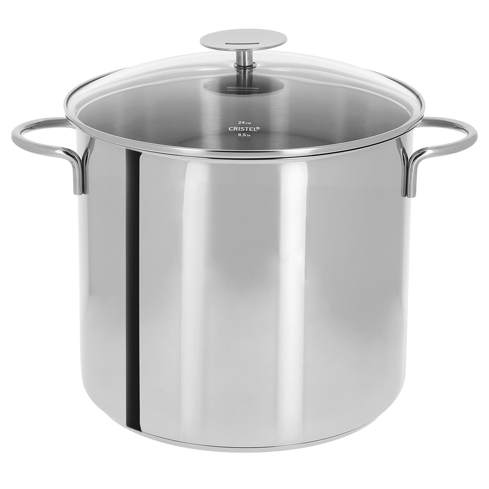 La Marmite Inox Mutine Fixe Cristel est réalisée en acier inoxydable 18/10 avec finition brillante miroir, anses en fil d'inox soudées et couvercle en verre trempé et bombé cerclage inox. Disposant d'un fond thermo-diffuseur elle assure une cuisson homogène et est bien sùr compatible tous feux y compris l'induction. l'inox 18/10 utilisé pour sa fabrication préserve les qualités gustatives des aliments et contribue à un nettoyage facile après usage.