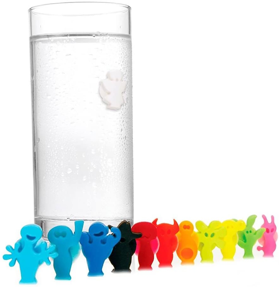 Les marque-verres VACU VIN permettent de personnaliser chaque verre ou chaque invité. Avec les marque-verres VAC VIN, vous aurez toujours 12 hôtes supplémentaires à votre fête ! Les marque-verres VACU VIN adhèrent au moyen d’une ventouse à la surface du verre.