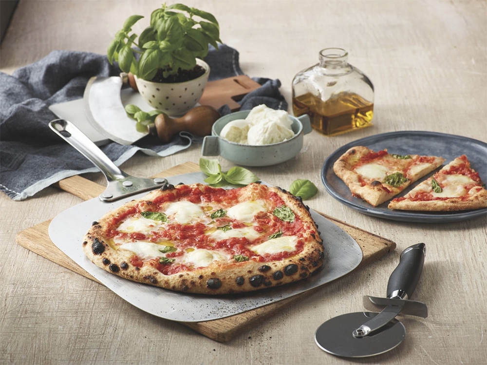 - Livré avec pelle et plat à pizza.