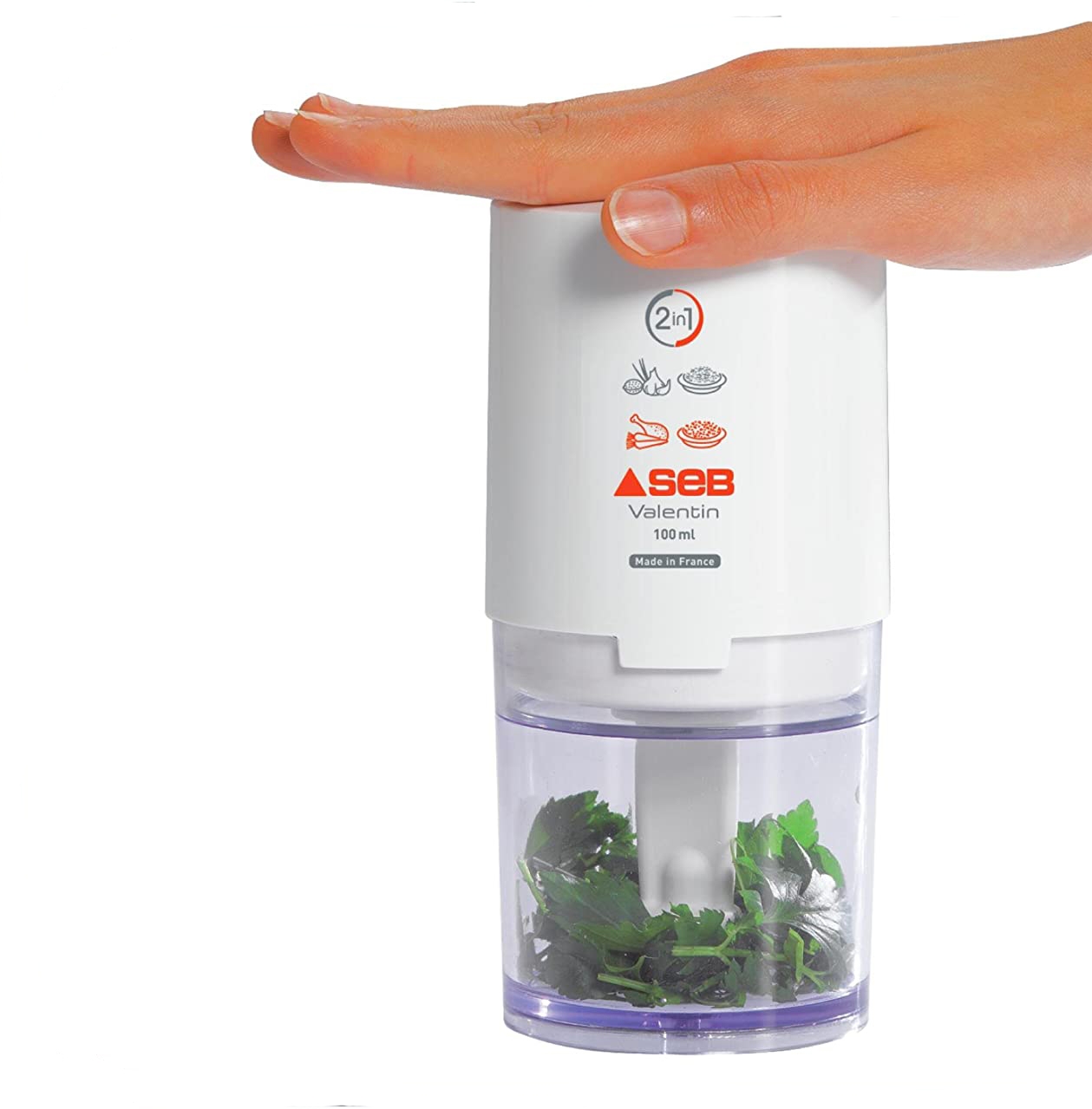Le mini hachoir Valentin SEB est idéal pour hacher les petites quantités comme les fines herbes, l'oignon, l'ail, le fromage, les noix ...