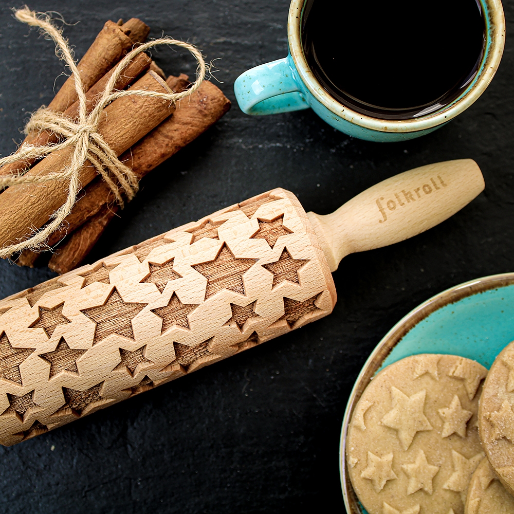 Descriptif Mini Rouleau à Pâtisserie Décor Etoiles Folkroll