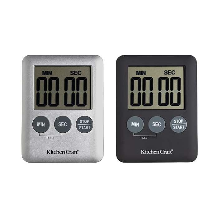 Le minuteur digital Kitchen Craft fonctionne jusqu'à 99 minutes et 59 secondes. Son format ultra plat aimanté permet de le positionner facilement sur toute surface métallique comme une porte de frigo.