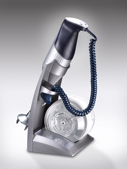 Le support spécifique particulièrement bien conçu sur ce modèle permet de ranger facilement votre mixeur plongeant Bamix. Des logements sonts prévus sur la partie arrière du support pour ranger tous les embouts et le mini-hachoir pour les avoir toujours à portée de main.