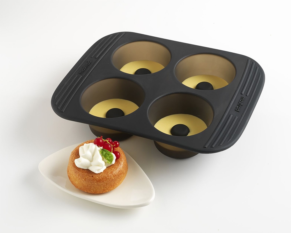 Le moule à Babas en silicone Mastrad anti-adhérent est muni de poignées rigide pour assurer une manipulation aisée. Garanti à vie et sans BPA, il supporte des températures allant de +220°C à -40°C, assure un démoulage rapide et facile et s'entretient aisément d'un coup d'éponge ou au lave-vaisselle.