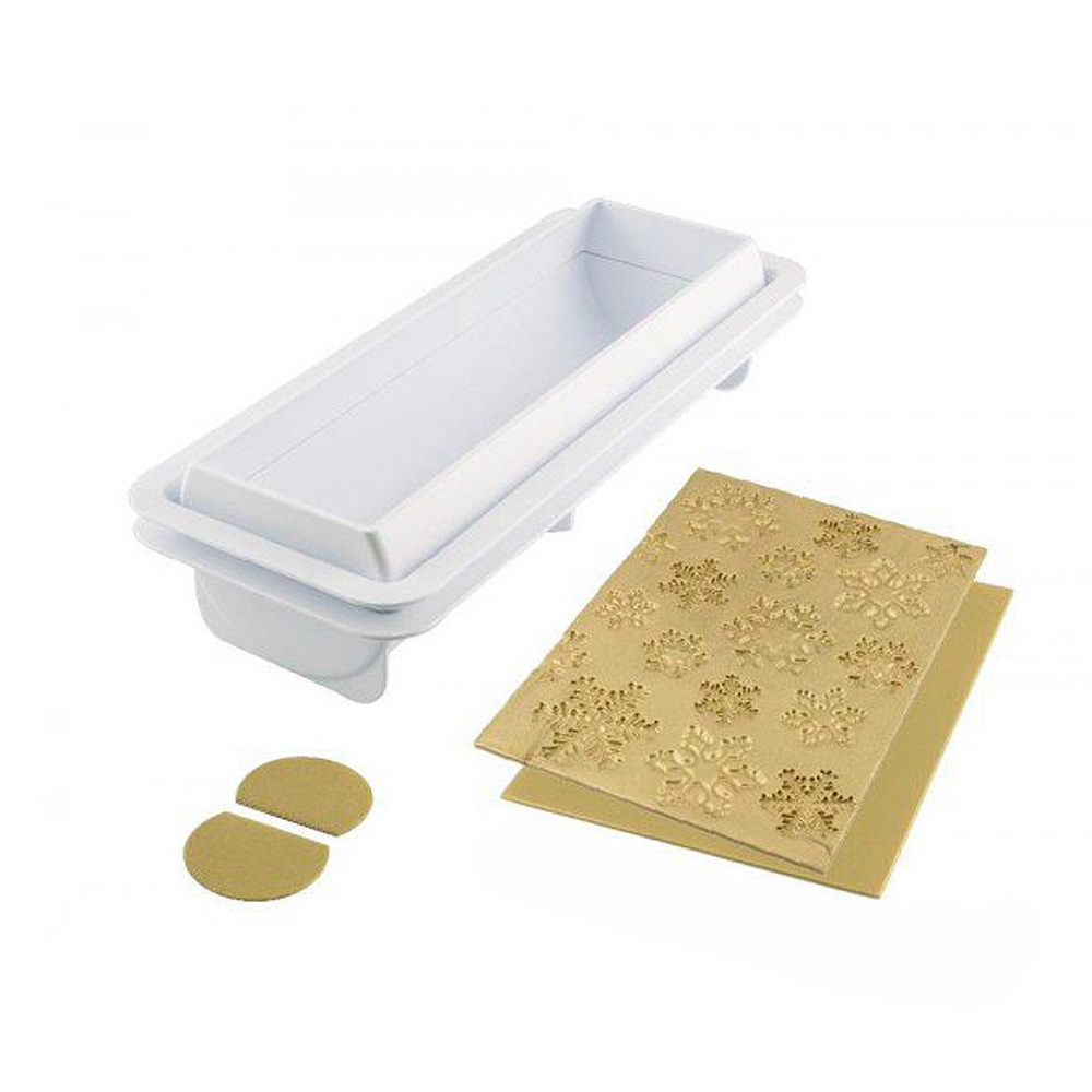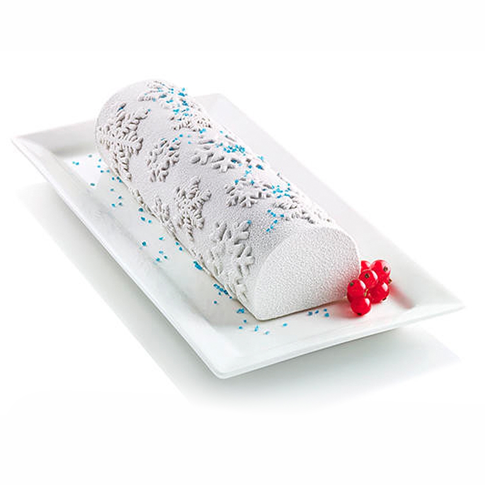 Le Moule à Bûche Frozen Silikomart est un kit innovant pour la réalisation de bûches froides ou glacées. Le kit est composé de 2 pièces plastique conçues pour donner un effet arrondi aux créations et pour donner plus de stabilité en phase de préparation. Il est livré avec 2 tapis en silicone, un uni et un avec texture de flocon de neige et une recette.