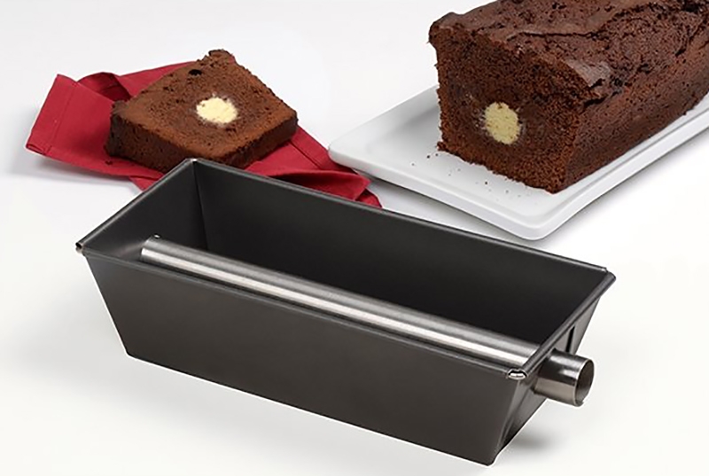 Inspiré du principe du moule à bûche, Patisse réinvente le moule à cake avec cette version avec insert qui va vous permettre de décupler votre créativité ! Le principe est très simple : Vous remplissez votre moule à cake insert en place, de la préparation de votre choix. Une fois votre cake cuit, vous retirez l'insert inox. Le trou formé est ensuite à remplir de la garniture de votre choix à l'aide d'une poche à douille. Le moule est livré avec une recette de moelleux au chocolat coeur vanille à titre d'exemple. Des milliers d'autres recettes sucrées ou salées sont bien sûr possibles.