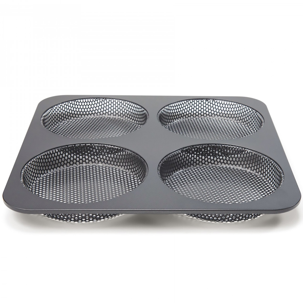 Le Moule à Pain Hamburger Anti-adhésif Patisse est réalisé en acier revêtu d'un anti-adhésif Xylan Whitford et permet de confectionner 4 pain à hamburger délicieusement moelleux et colorés. L'acier d'une épaisseur de 0,3 mm est perforé pour assurer une belle coloration. Le moule de dimensions 28 x 28 x 2 cm, permet la réalisation de 4 pains de diamètre 12 cm x 2 cm de hauteur.