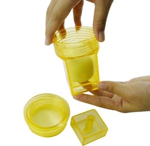 Matière plastique. Base carrée. Dimensions : 4.7 x 4.7 cm. H 9 cm.