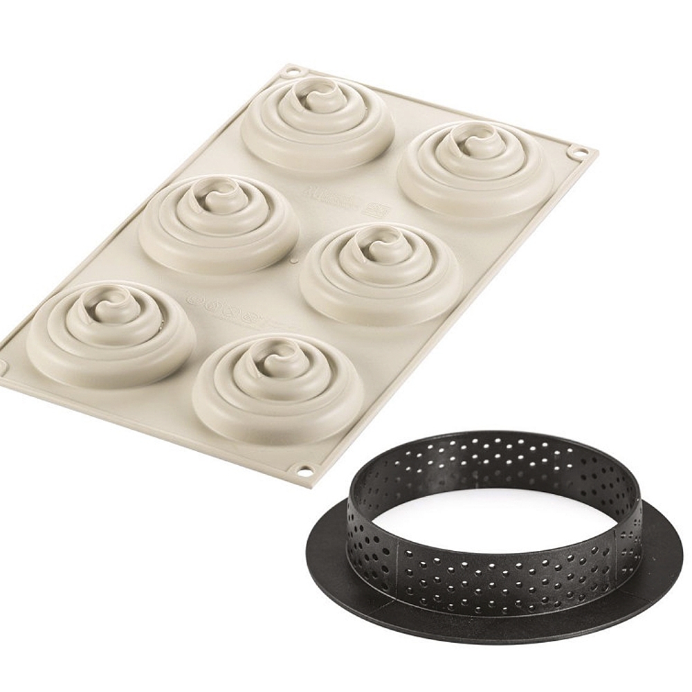 - 1 moule en silicone LSR & 6 découpoirs-cercles à tarte perforés.