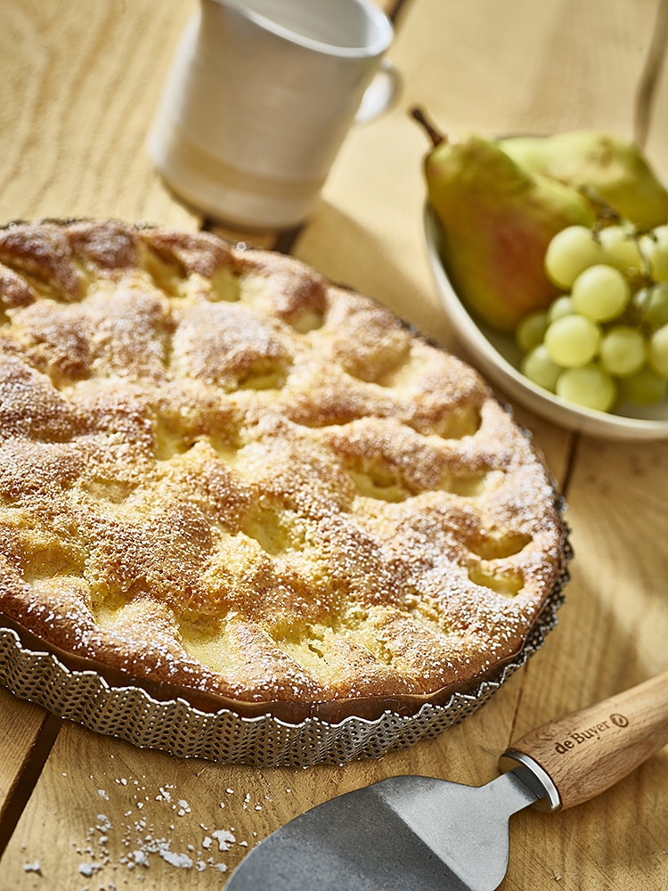 Les perforations du moule à tarte inox De Buyer permettent d'obtenir une cuisson uniforme et des pâtes croustillantes. La feuille de cuisson permet un démoulage très facile.
