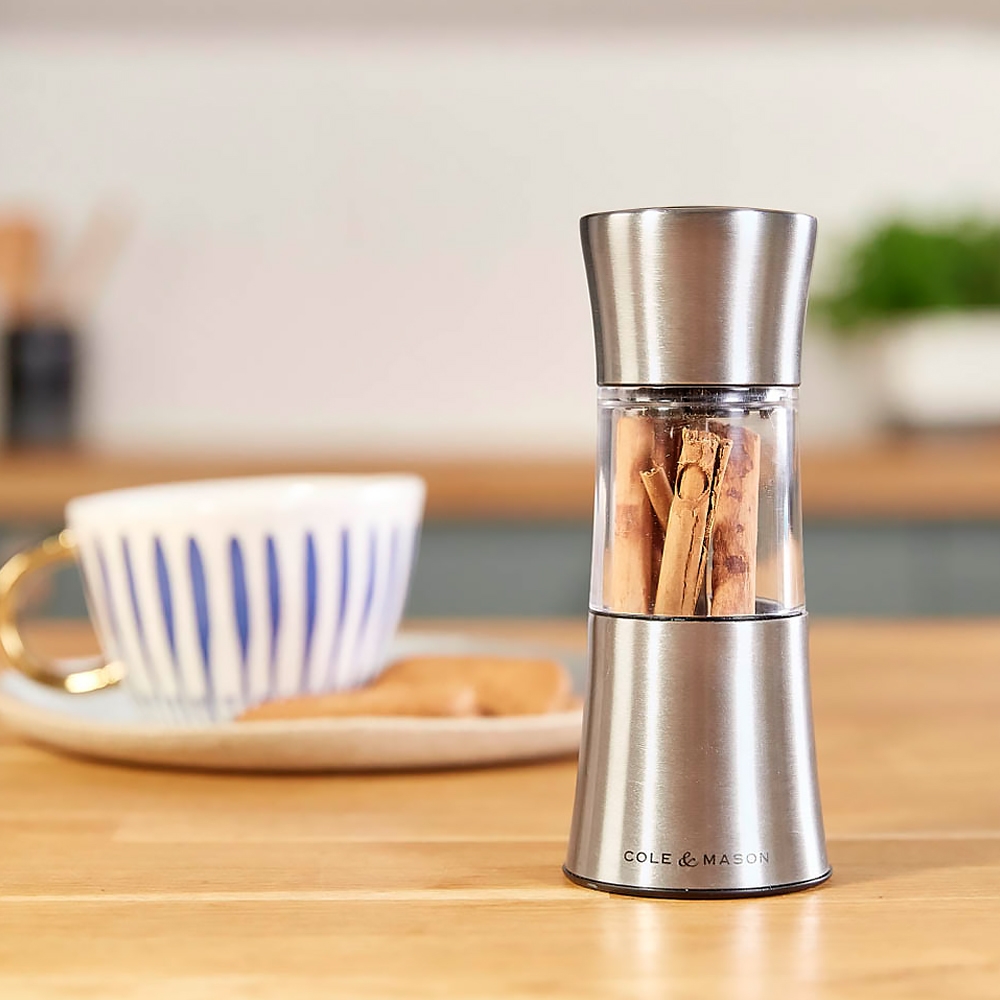 Le Moulin à Epices Stadhampton Cole & Mason permet de broyer facilement une grande variété d'herbes aromatiques, d'épices (graines de lin, bâtons de cannelle, étoiles d'anis, graines de courges etc...) et de piments séchés. Sont exclus, les herbes fraîches ou les épices à coque comme la muscade.