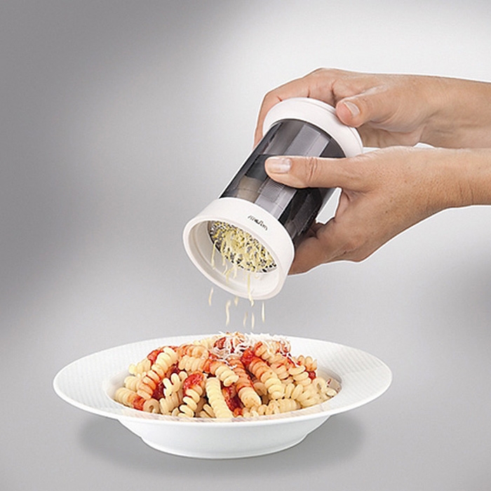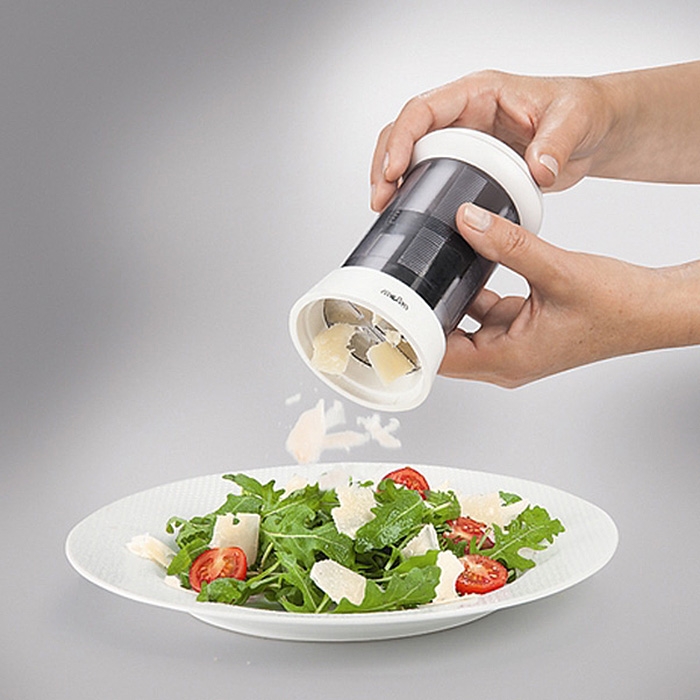 La râpe à fromage moHA s'utilise comme un moulin. Il suffit de tourner por râper sans effort. Elle possède 2 types de râpe pour râper finement ou pour réaliser des copeaux. Très pratique, la râpe non utilisée se range facilement dans le couvercle. Cette râpe est garantie 5 ans.
