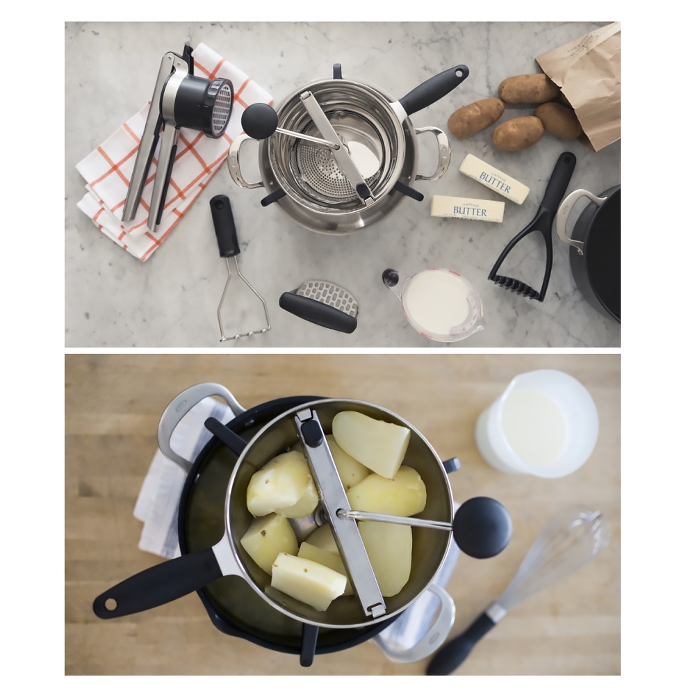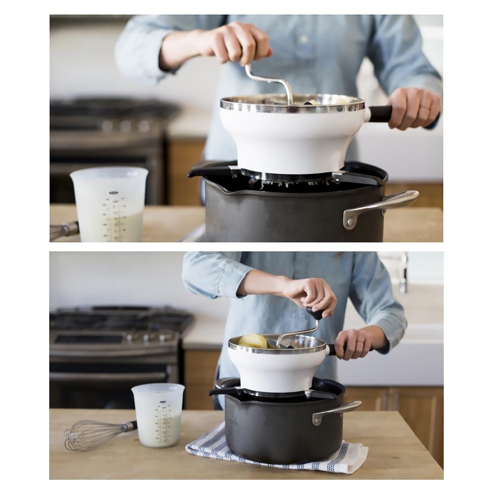 Le moulin à légumes Oxo est l'ustensile parfait pour la préparation de purées fraîches, des sauces, des soupes... Il peut être placé sur des ustensiles allant jusqu'à 28 cm de diamètre.