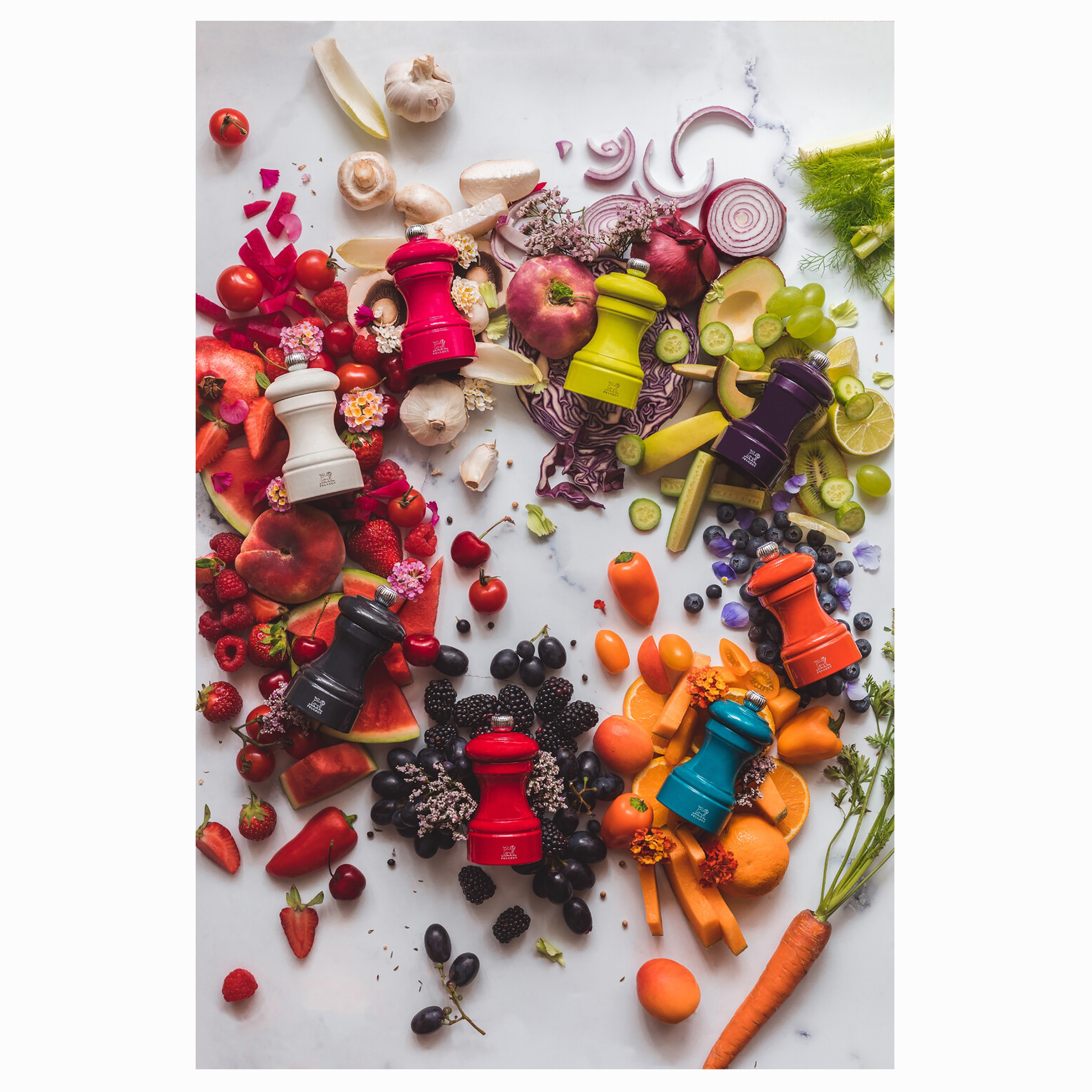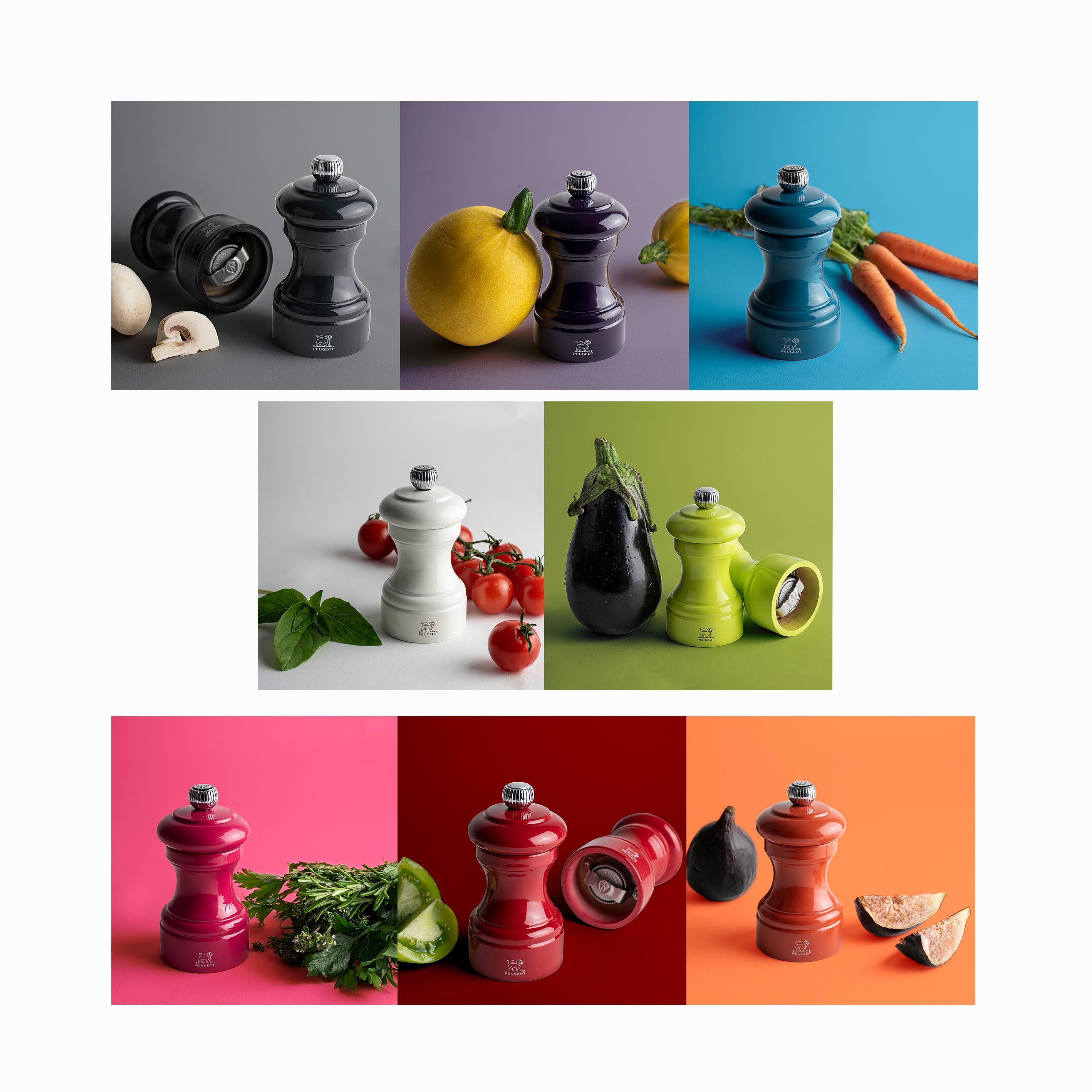 Icone de la marque Peugeot crée en 1874, le Moulin Bistro se décline désormais en couleurs fraîches et vitaminées pour apporter des touches chatoyantes sur vos tables. Fabriqués en Franche-Comté avec du bois de hêtre issu de forêts gérées durablement, ces moulins sont équipés d'un mécanisme Peugeot garanti sans limitation de durée.