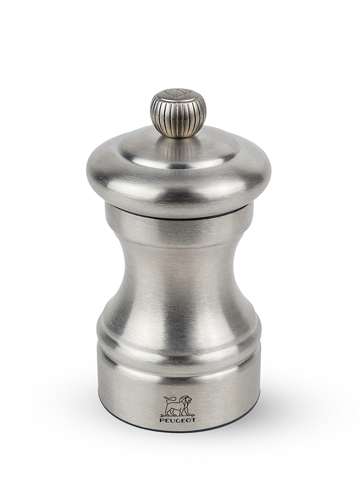 Modèle historique créé en 1874, le moulin Bistro de Peugeot est un hommage à l'univers de la gastronomie. Les moulins à poivre ou à sel de la collection Chef sont particulièrement élégants. Habillés d'inox, ils brillent de mille feux sur toutes les tables. Tout autant design que fonctionnel, le Bistro Chef est fabriqué en France et son mécanisme est garanti à vie.