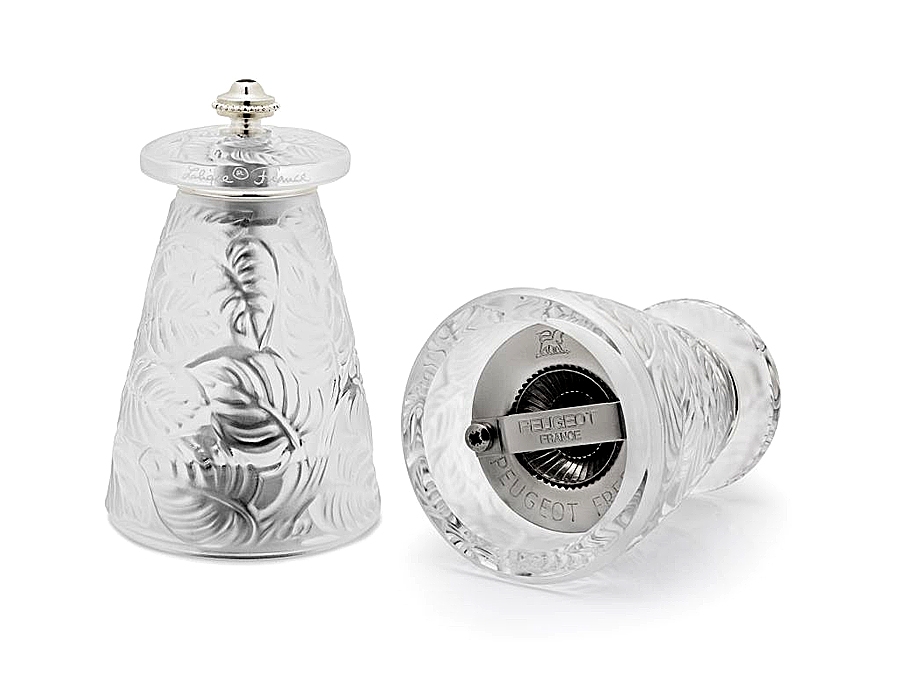 La cristallerie Lalique et les moulins Peugeot s'associent pour rééditer ce modèle hors du commun qui illuminera votre table.