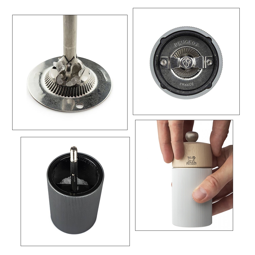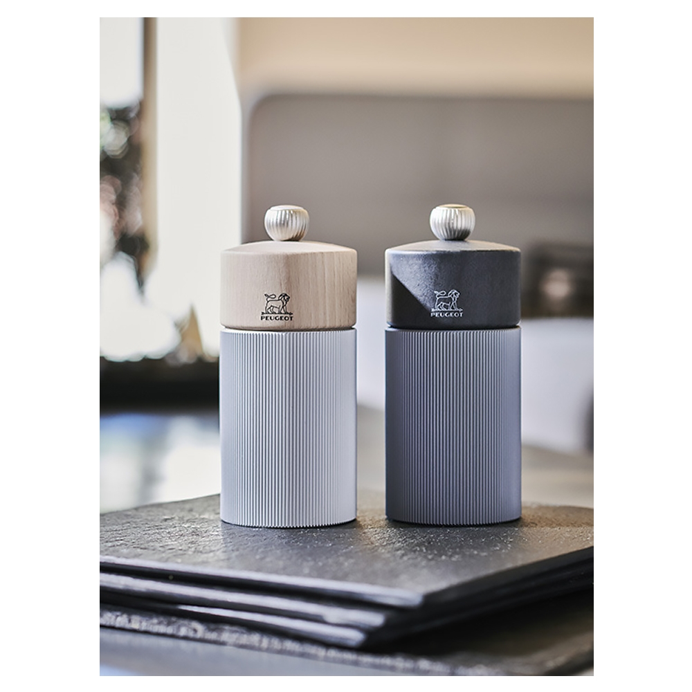 Le moulin Line Peugeot est réalisé en bois de hêtre PEFC et aluminium pour un design très contemporain et une excellente prise en main. Fabriqué en France, il dispose d'un bouton permettant le réglage de la mouture et d'un mécanisme garanti sans limitation de durée. Le mécanisme du moulin à sel est réalisé en acier inoxydable et n'est donc pas sensible à la corrosion saline. Il peut être utilisé avec du sel de 4 mm de diamètre max (sel de mer ou sel gemme). Le mécanisme du moulin à poivre est lui conçu pour broyer tous les poivres (noirs, blancs, verts, rouge mais aussi les baies roses (15% maxi dans un mélange de poivre) et les graines de coriandre.