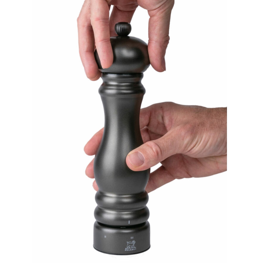 L'iconique Moulin Pris Chef Peugeot se décline désormais en inox carbone. Son design intemporel sublimé par cette finition admirable est secondé par son mécanisme U'Select permettant d'ajuster avec précision la taille de la mouture. De fabrication française, il est garanti 5 ans (mécanisme garanti sans limitation de durée). Le moulin à poivre permet l'utilisation de poivres noirs, blancs, verts ou rouges, baies roses (15% maxi dans un mélange de poivre), graines de coriandre. Le moulin à sel permet l'utilisation de cristanx de sel sec (sel gemme) d'une taille inférieure ou égale à 4 mm (ne pas utiliser de sel de mer humide même séché).