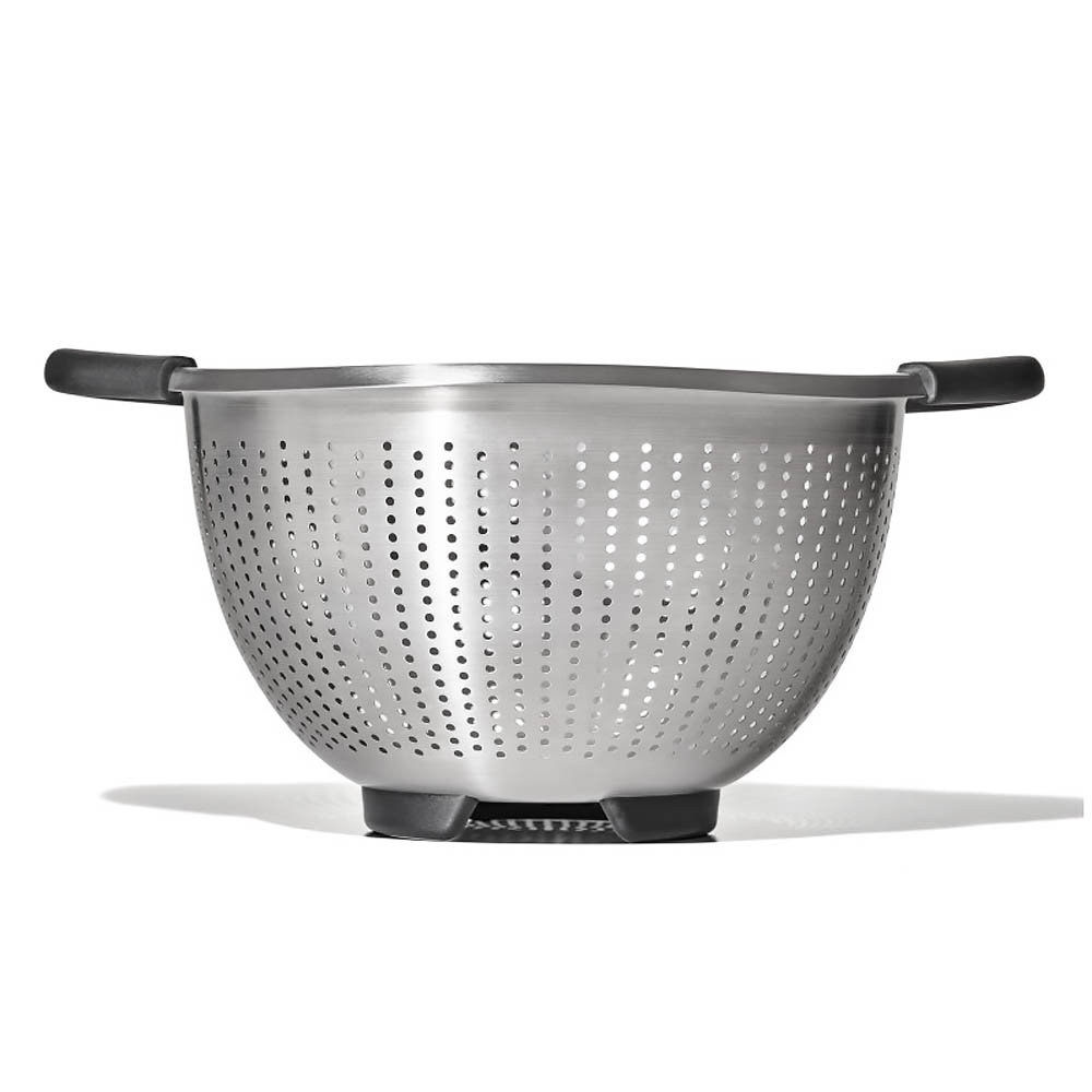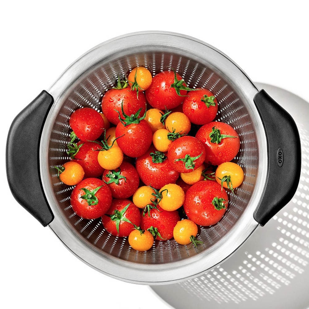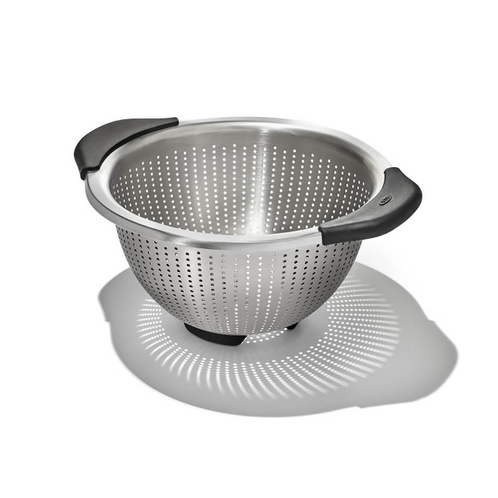 La Passoire Inox 2,8 L Oxo ets un accessoire indispensable et polyvalent en cuisine. Réalisée en acier inoxydable de grande qualité, elle possède des poignées surélevées antidérapantes offrant une prise en main confortable et sûre. Elle est montée sur 3 pieds antidérapants pour une stabilité maximale dans l'évier ou sur le plan de travail. La conception perforée très fine (2 mm) permet un égouttage rapide et efficace y compris pour les plus petits aliments comme le riz. Son bord retorné très hygiénique permet de vider facilement l'ean sans abimer les aliments. Elle est compatible lave-vaisselle et est garantie 2 ans.