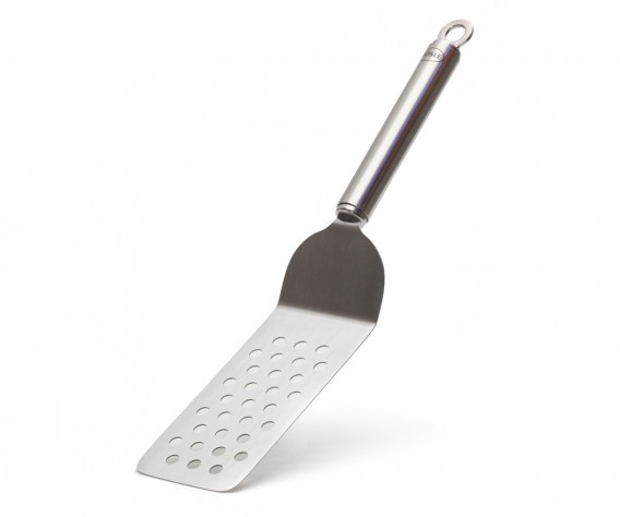La pelle en inox Rösle vous permet de manipuler facilement vos préparations. Les graisses et liquides s'écoulent grâce aux perforations qui empêchent également les aliments de coller à la spatule.