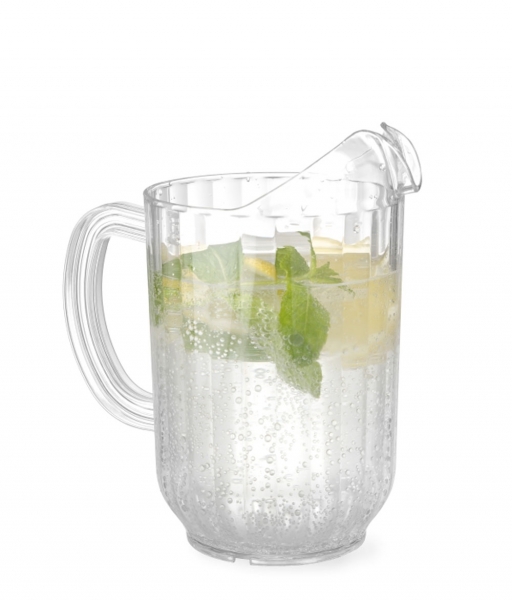 Ce pichet transparent est en polycarbonate, ce qui lui permet d'être très résistant aux chocs. Il peut contenir jusqu'à 1,8 L et est doté d'un bec verseur permettant de retenir les glaçons et éviter les éclaboussures.