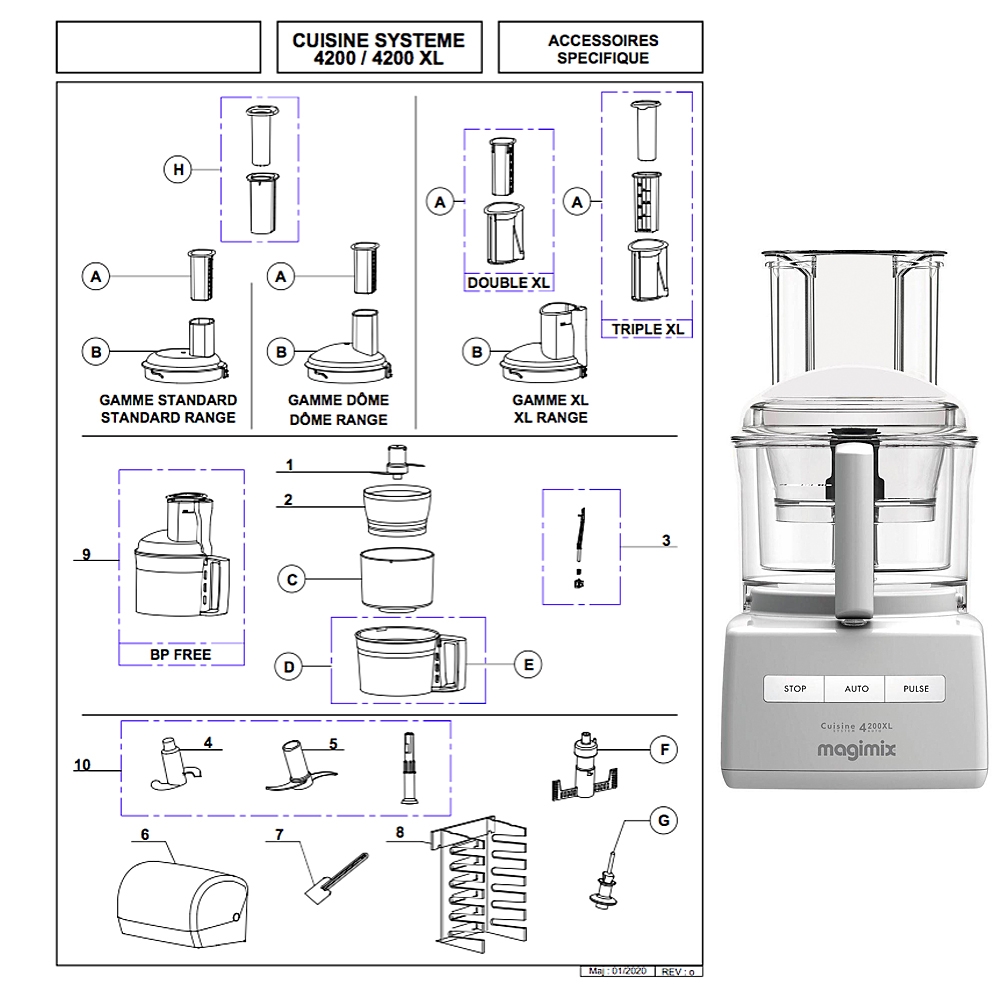 Description pièces détachées MAGIMIX 4200/4200 XL