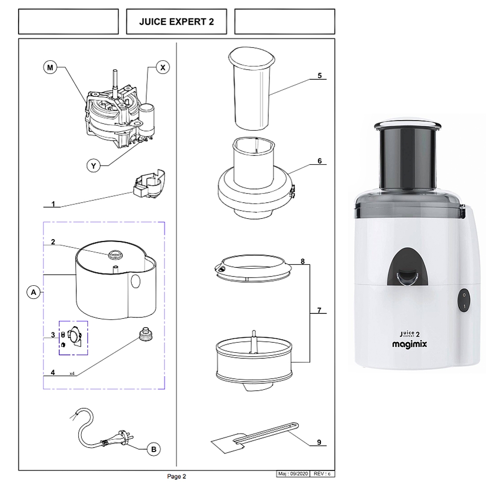 9 (page 2) Presse agrume Complet (panier+bras+attache bras+2 cônes)